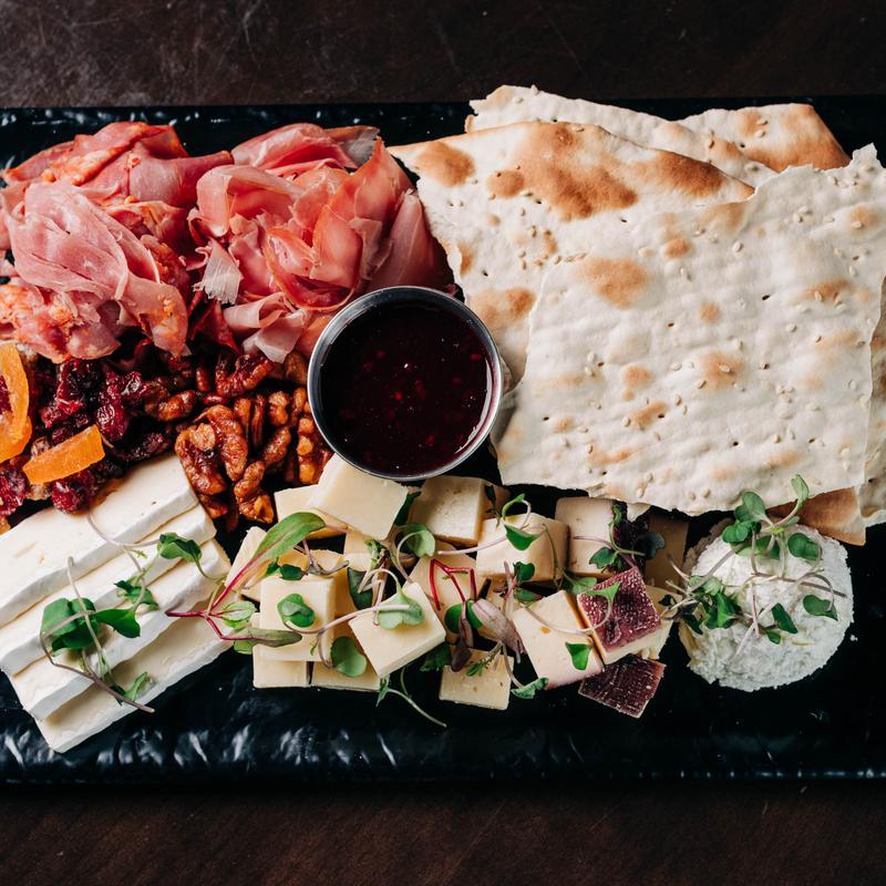 Merlot, brie, goat, aged cheddar, prosciutto, capicola, lavash, dried fruit/mixed nuts, blackberry-pepper jam.