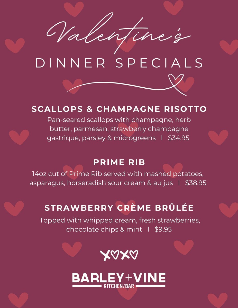 Reservations are available for Valentine’s Day & Valentine’s Weekend! Our regular menu is also available! Specials are available Friday, Saturday, and Sunday starting at 4pm.